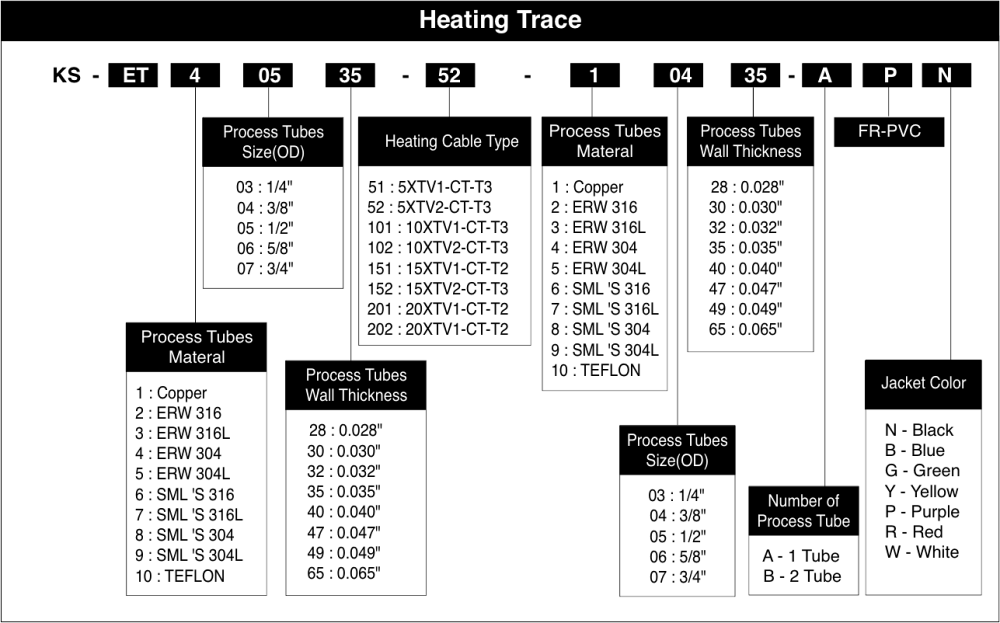 Tube Tracer with power limiting heating cable is suitable for maintaining high temperature and withstands temperature exposure of 250℃, and lower risk of overheating the specification tube or product than with constant watt design Self-regulating heating cables provides solutions for industrial freeze protection and process temperature